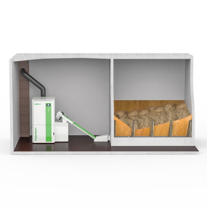 - Silo per il pellet incorporato di grande capacità, fino a 110 kg