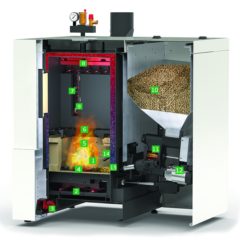 - Sistema di alimentazione del bruciatore completamente automatizzato e con valvola stellare rotante che garantisce la massima sicurezza contro il ritorno di fiamma